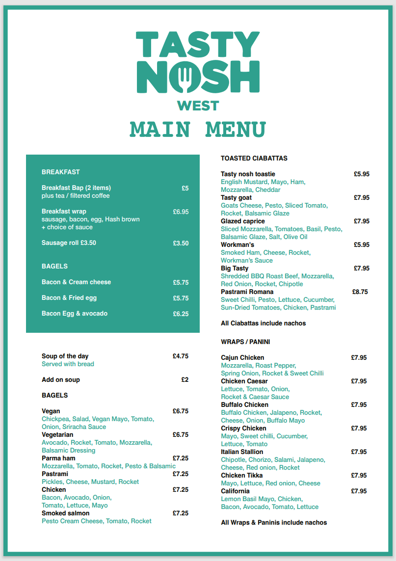 Whether you're in the mood for a leisurely brunch or a quick grab-and-go meal, Tasty Nosh West is your go-to destination in Belfast. With its delectable menu, welcoming staff, and cozy vibe, it’s no surprise that this café has captured the hearts—and appetites—of so many. So gather your friends or take a moment for yourself; either way, Tasty Nosh West promises to deliver a fulfilling and delightful experience that you won’t soon forget.